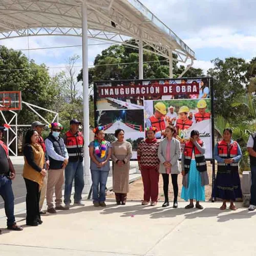 M de R / Jiquipilas La presidenta del municipio de Jiquipilas, Yaneth Chiu López, inaugura la construcción de la cancha de usos múltiples y el techado en la