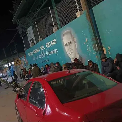 Janeth Hernández / San Cristóbal de Las Casas Desde la noche del sábado, padres y madres de familia permanecen a la intemperie, soportando las bajas temperaturas que se