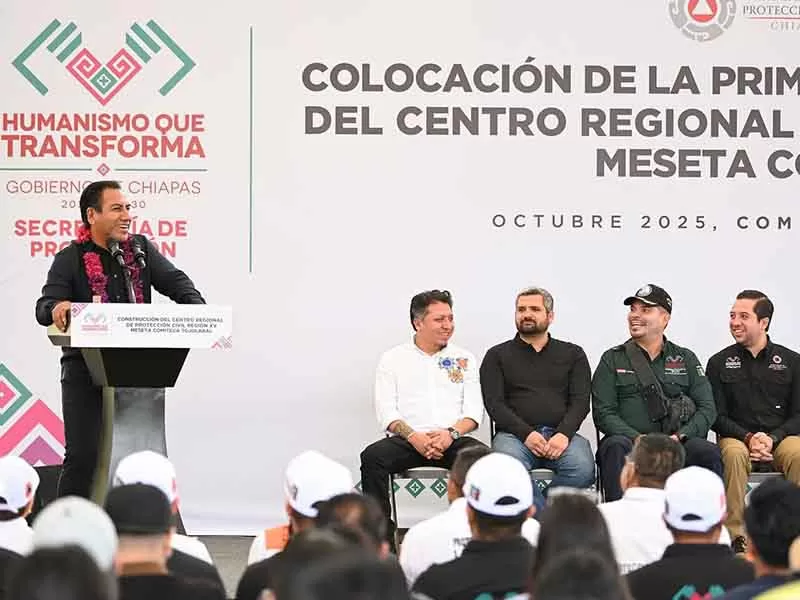 M de R / Diario de Chiapas Durante una intensa gira de trabajo por Comitán de Domínguez, el gobernador Eduardo Ramírez Aguilar puso en marcha diversas acciones orientadas al fortalecimiento de la infraestructura en materia de protección civil y educación. Subrayó que, tras haber recuperado la paz y la seguridad, el gobierno de la Nueva ERA impulsa inversiones estratégicas para consolidar programas sociales y obras que mejoren la calidad de vida de la población. En este municipio, el mandatario colocó la primera piedra del Centro Regional de Protección Civil, una