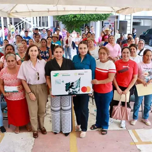 M de R / Villaflores En el patio del Ayuntamiento de Villaflores, la presidenta municipal Valeria Rosales Sarmiento y la gerente general de la Financiera para el Bienestar