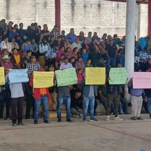 Con pancartas con consignas como “nuestro pueblo es de paz, no de delincuentes” y “no al crimen organizado”, los ejidatarios exigieron que cuanto antes se manden patrullajes M