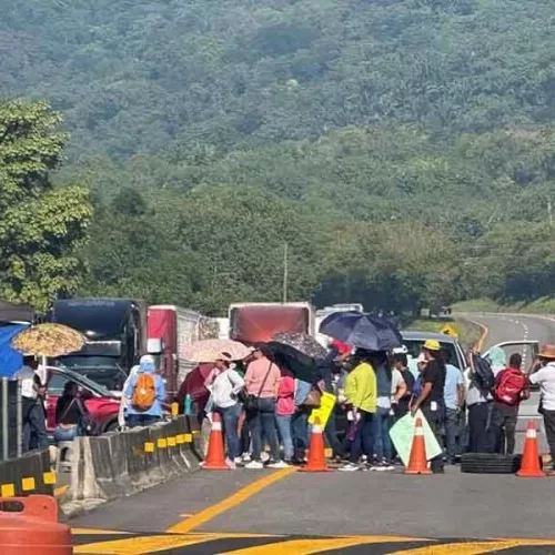 Integrantes de la escuela primaria “Miguel Hidalgo y Costilla” taparon el paso en la vía Acacoyagua – Mapastepec, para exigir se investiguen irregularidades en dicho plantel. José Cancino