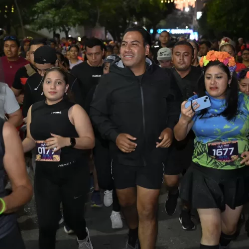 -El gobernador Eduardo Ramírez Aguilar, junto a su esposa Sofía Espinoza y su hija Yazmín Ramírez, participaron en dicha carrera con alma y color MdR/ Diario de Chiapas El gobernador Eduardo Ramírez Aguilar, acompañado de su esposa Sofía Espinoza Abarca y su hija Yazmín Ramírez Espinoza, participó en la Ruta Xibalbá 5K: carrera con alma, color y raíces, un encuentro deportivo y de convivencia ciudadana que reunió a más de 10 mil participantes en un ambiente lleno de arte, cultura y tradición, como parte del Festival Xibalbalam. Tras completar el